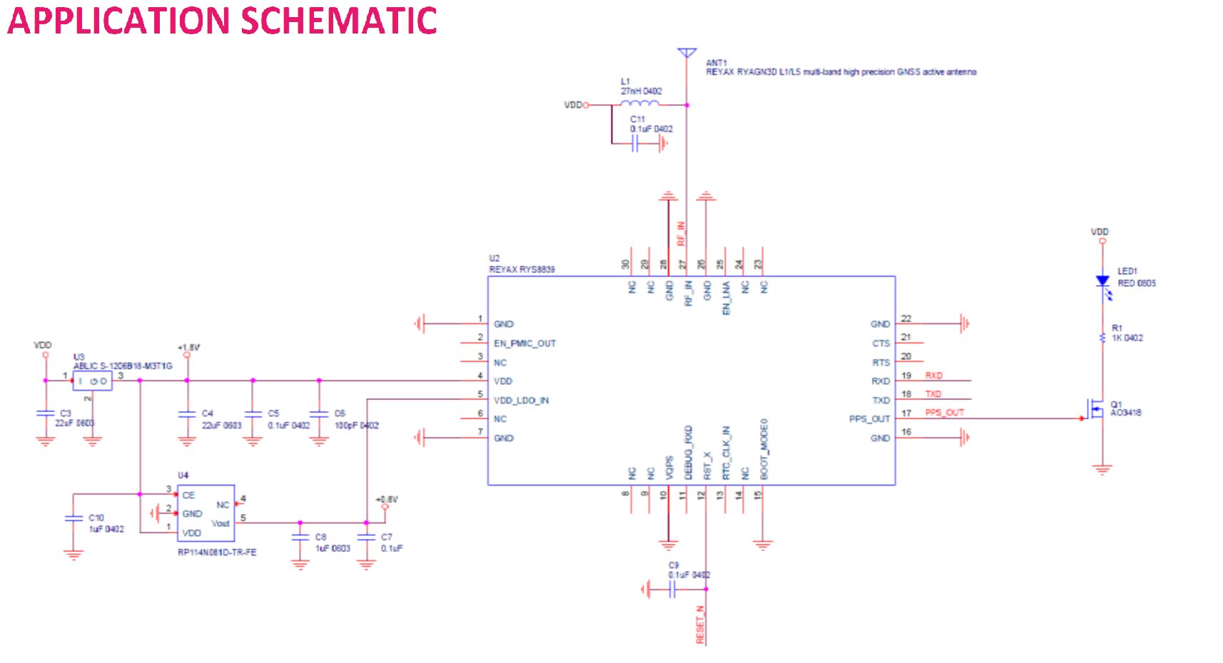 RYS8839は、超低消費電力1.8VのL1 L5デュアルバンドマルチコンステレーション